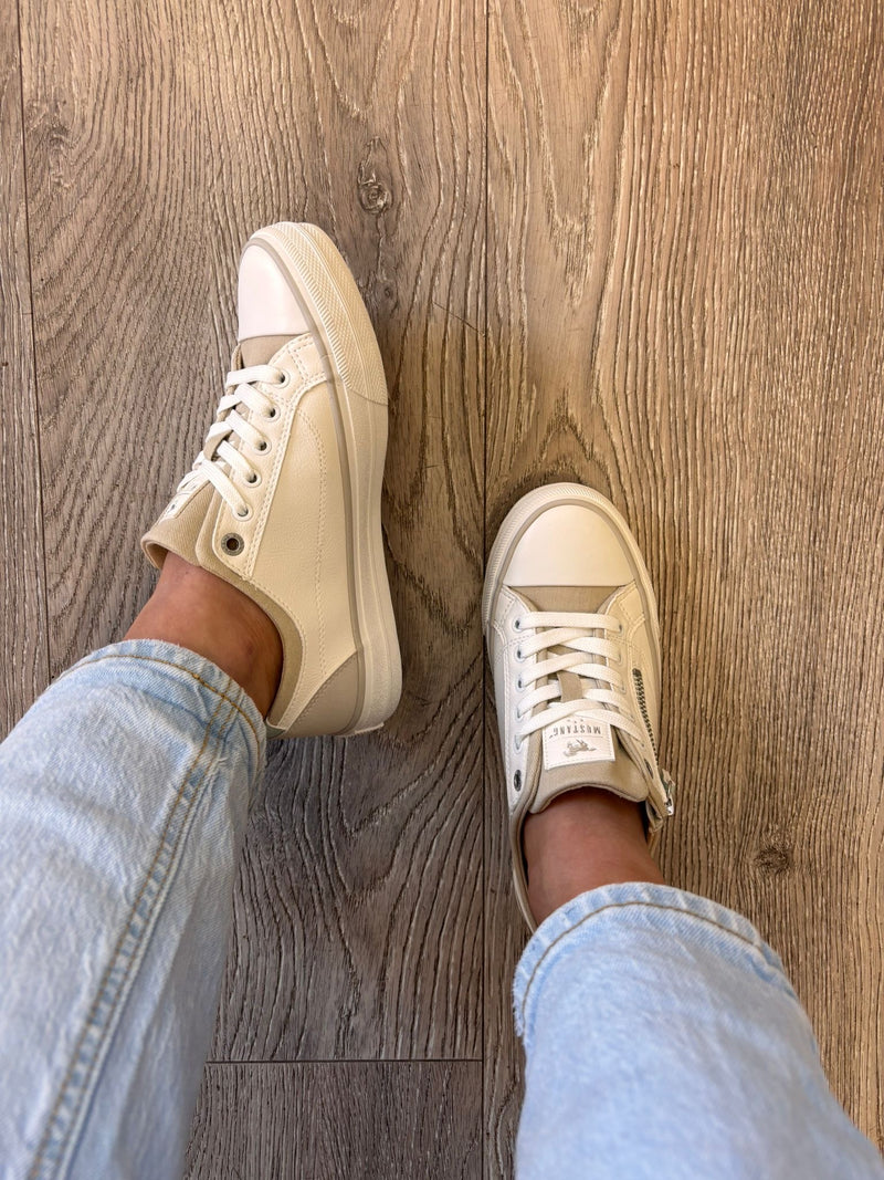 Mustang - 26MO222010 Cream Zip Trainer