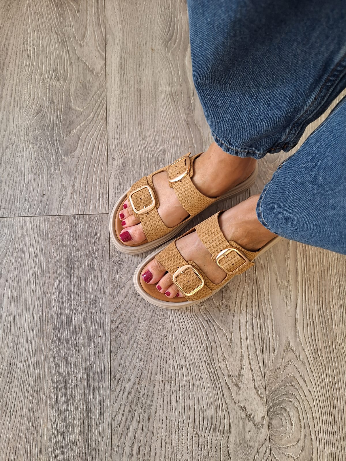 Tamaris - 27239 Tan Woven Buckle Mule