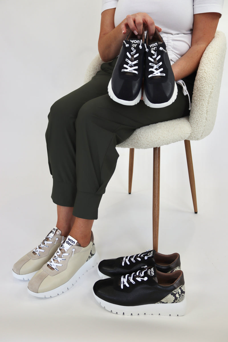 Wonders - A-2495 Black Snake Slip On Trainer