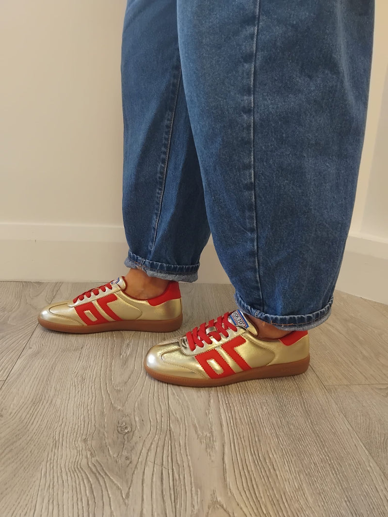 Victoria - 1 134115 Gold and Burgundy Retro Trainer