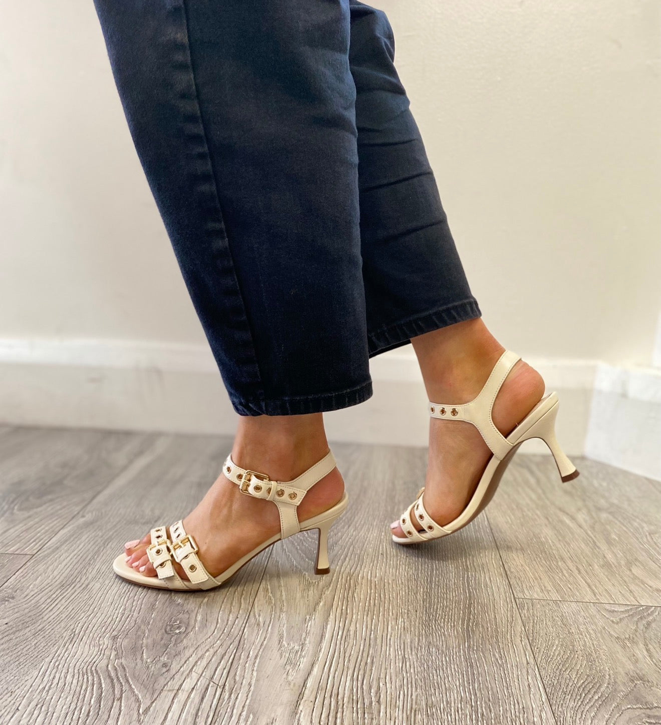 Expertly crafted in Spain by Lodi, a brand renowned for its exceptional quality and attention to detail, the A-Boreal sandal is designed to take you from day to night with effortless style. The neutral cream tone provides endless versatility, while the metallic studs create a striking focal point.