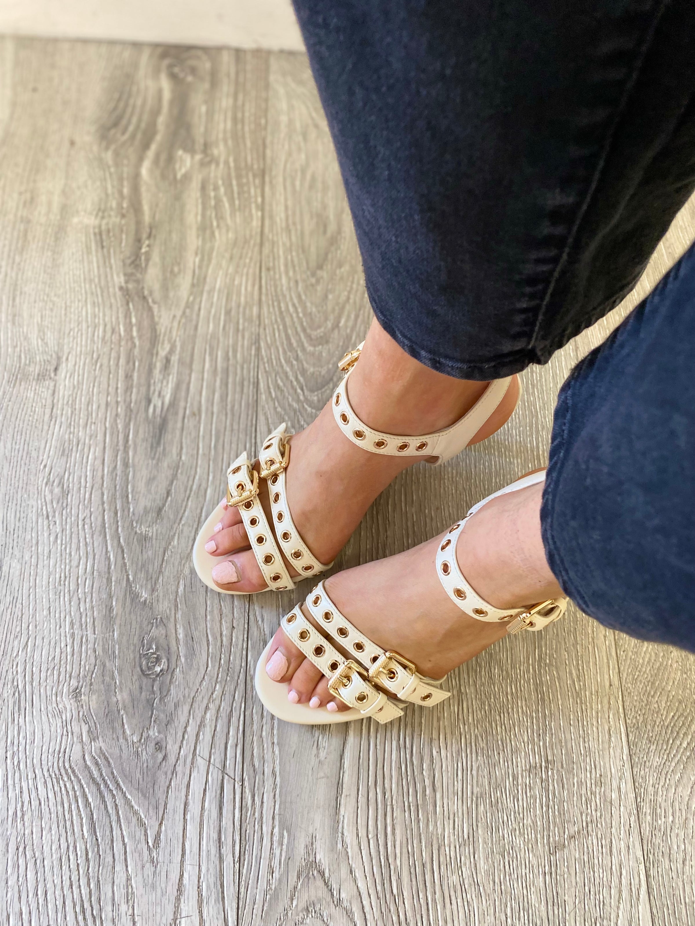 Step into summer sophistication with the Lodi A-Boreal Cream Stud Sandal. This stunning sandal combines classic elegance with edgy detailing, featuring eye-catching stud embellishments that add a touch of glamour to the soft cream leather.